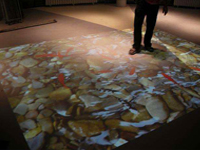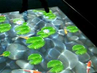 地面互动游戏:观众踩在地面上时,会看到脚下出现水波纹以及图像翻转的效果,这项技术可以让观众与地面的图像进行互动。 |